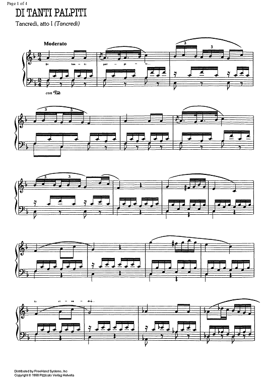 "Di tanti Palpiti from Tancredi" Sheet Music by Gioachino Rossini