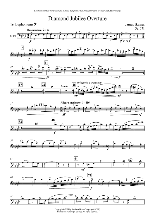 Digital Sheet Music for Diamond Jubilee Overture - Euphonium 1 BC by James Barnes scored for Concert Band; id:502340