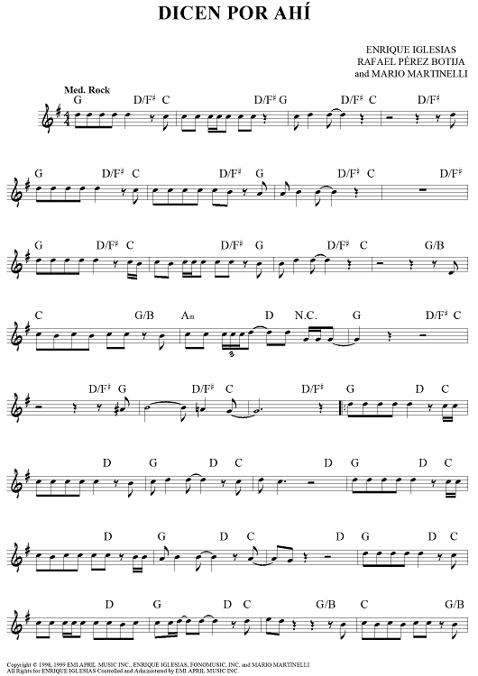 "Dicen Por Ahí" Sheet Music by Enrique Iglesias