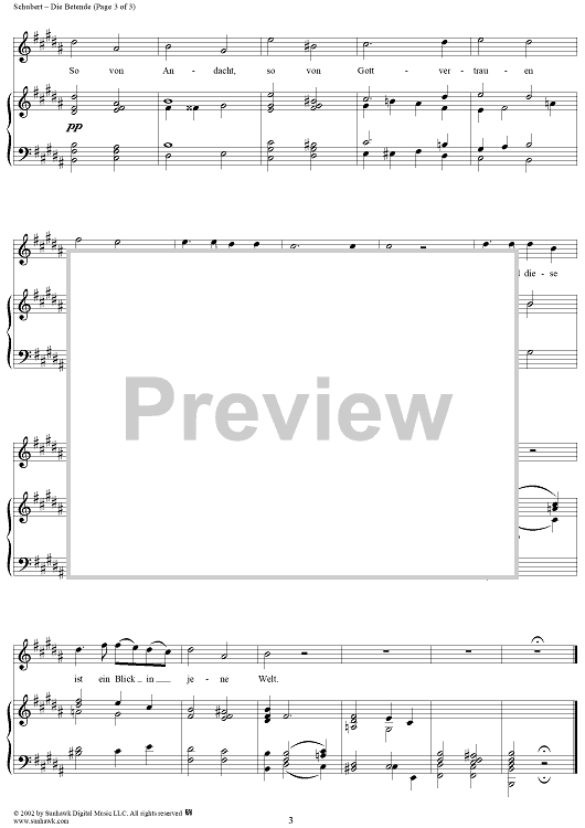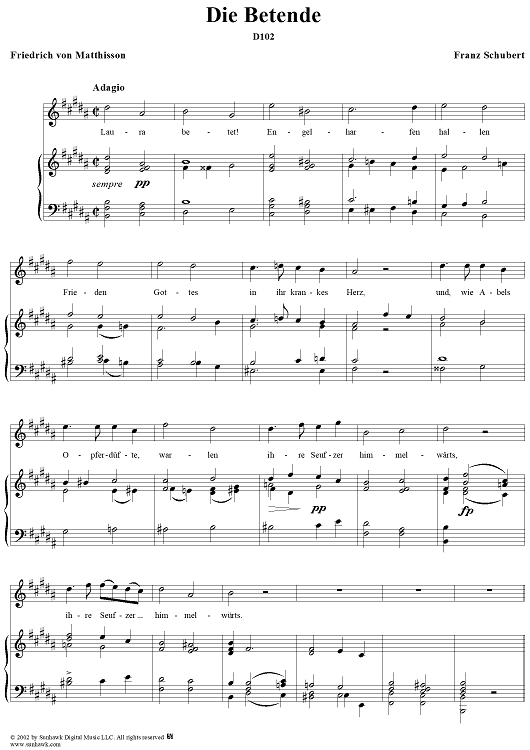 Digital Sheet Music for Die Betende, D102 by Franz Schubert scored for Voice/Piano; id:256496