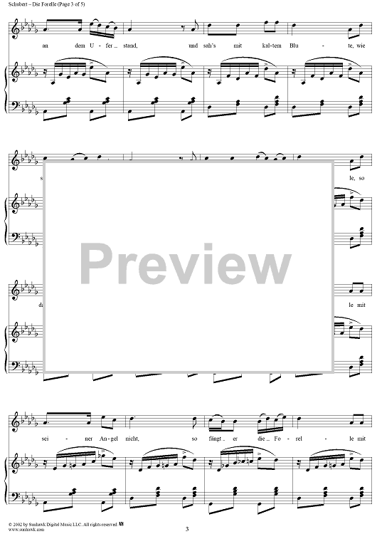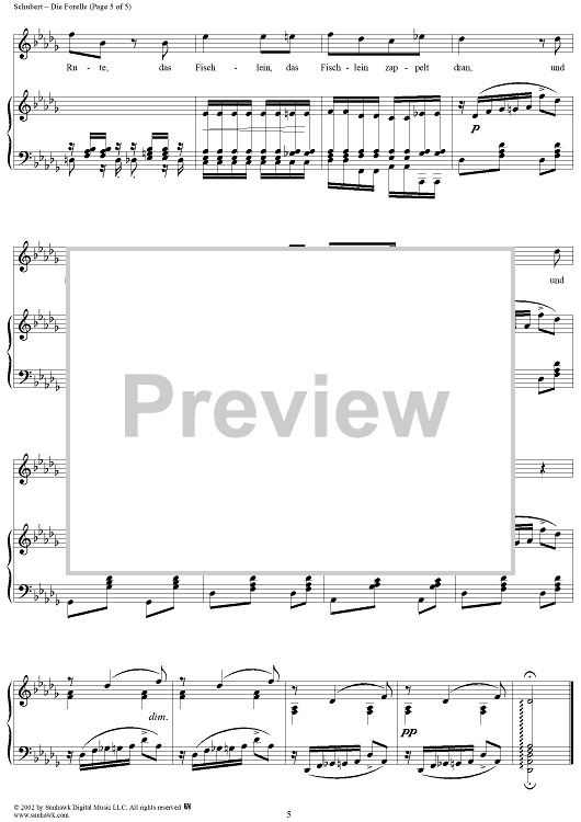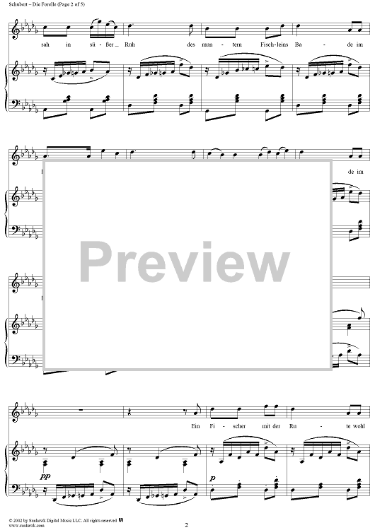 Digital Sheet Music for Die Forelle, Op. 32, D550 by Franz Schubert scored for Voice/Piano; id:256520
