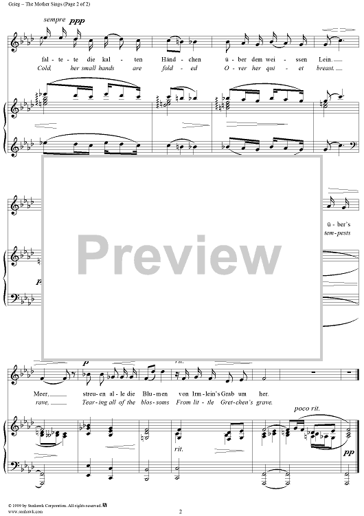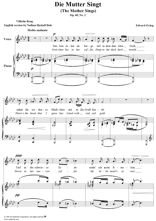 Digital Sheet Music for Die Mutter Singt by Edvard Grieg, Vilhelm Krag scored for Voice/Piano; id:113240