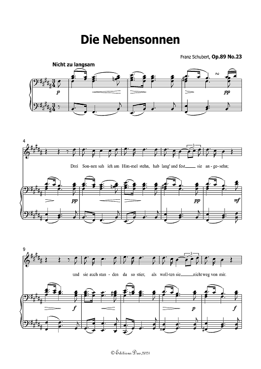 "Die Nebensonen" Op.89 No. 23 in B Major. By Franz Schubert