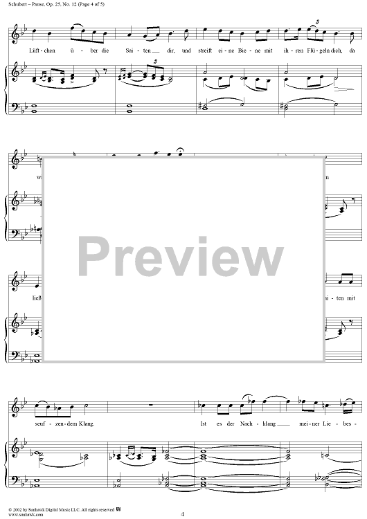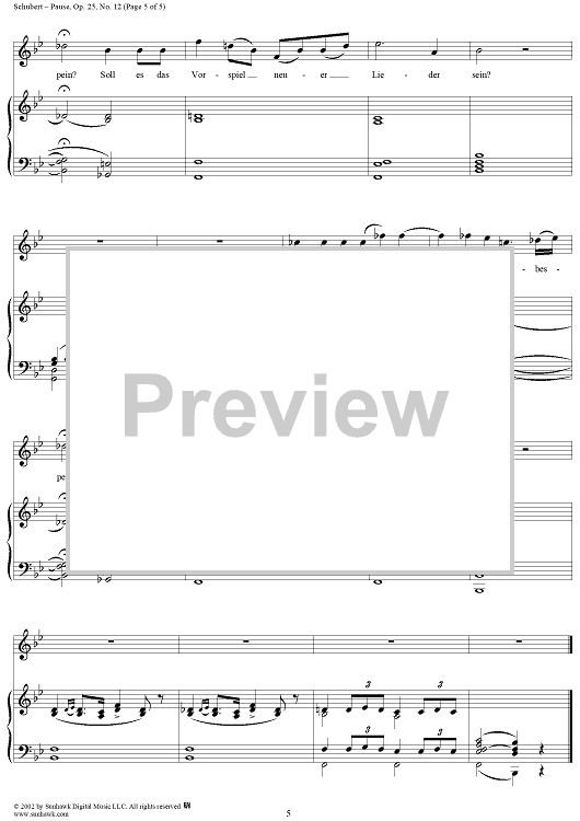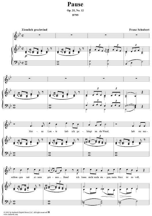 Digital Sheet Music for Die schöne Müllerin, No. 12 - Pause, Op. 25, D795 - No. 12 from "Die Schöne Müllerin" Op.25 - D795 by Franz Schubert scored for Voice/Piano; id:256859