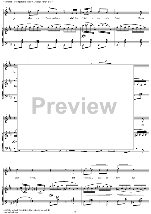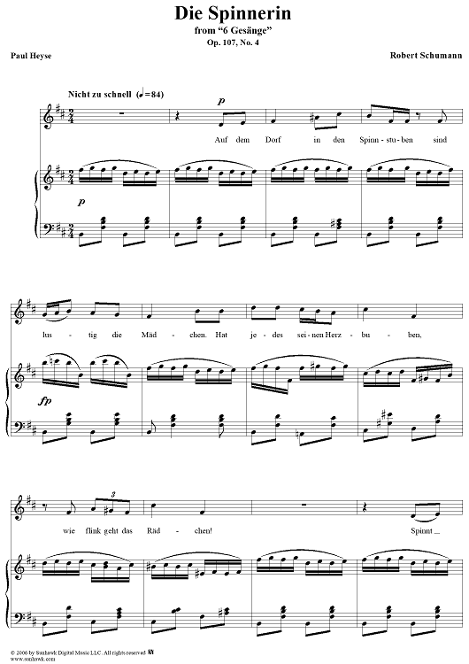 Digital Sheet Music for Die Spinnerin, No. 4, Op. 107 by Robert Schumann, Paul Heyse scored for Voice/Piano; id:318122