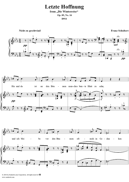 "Die Winterreise, no. 16: Letzte Hoffnung" Sheet Music by Franz Schubert