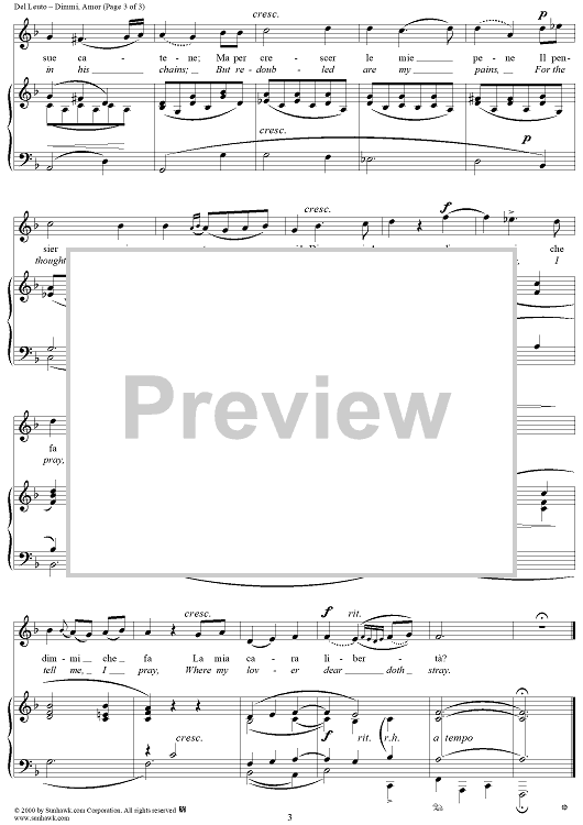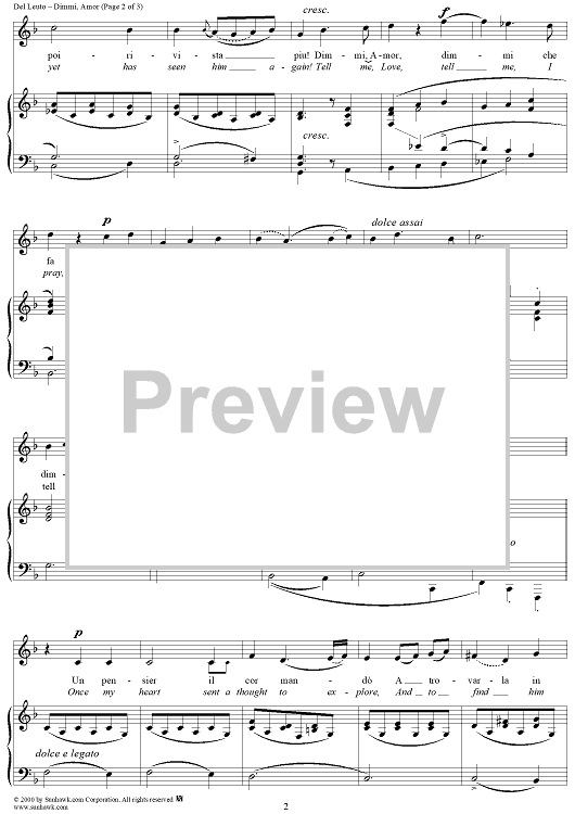 Digital Sheet Music for Dimmi, Amor (Tell Me, Love) by Arcangelo Del Leuto scored for Voice/Piano; id:271279
