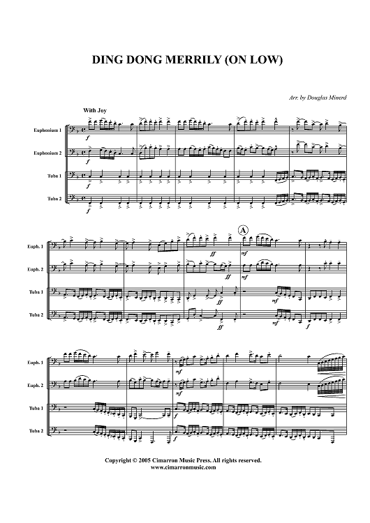 Digital Sheet Music for Ding Dong Merrily (on Low) - Score by Douglas Minerd scored for Tuba Quartet; id:316078