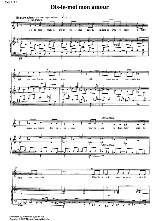 Digital Sheet Music for Dis-le-moi mon amour by , Marco Sofianopulo scored for Soprano/Piano; id:334369