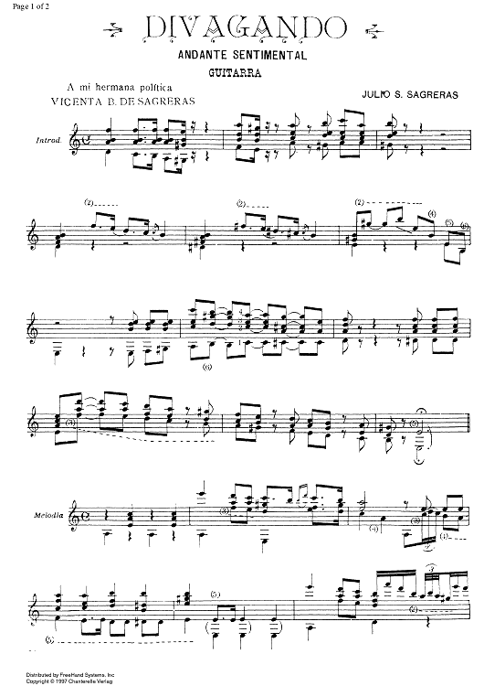 Digital Sheet Music for Divagando by Julio Sagreras scored for Guitar; id:327136