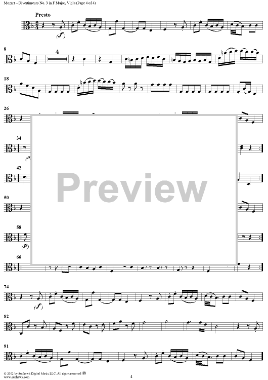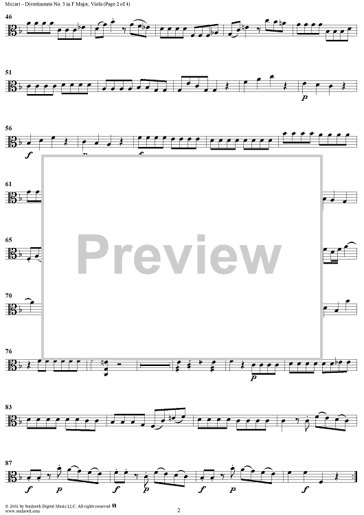 Digital Sheet Music for Divertimento No. 3 in F Major, K138 - Viola by Wolfgang Amadeus Mozart scored for String Quartet; id:253054