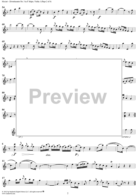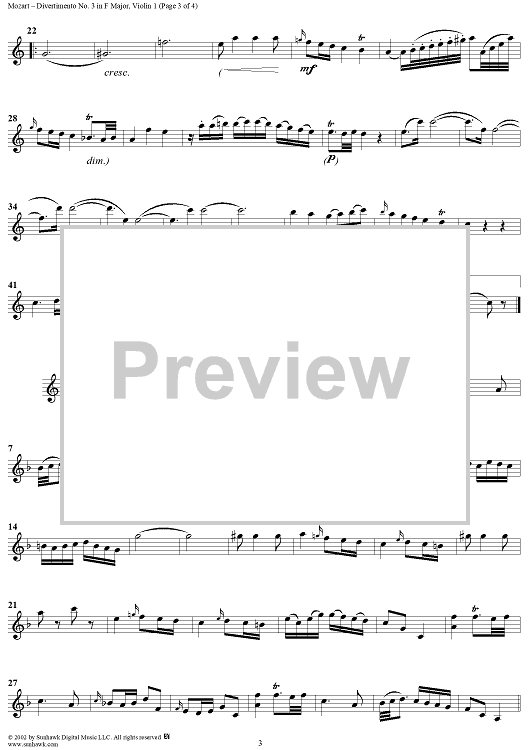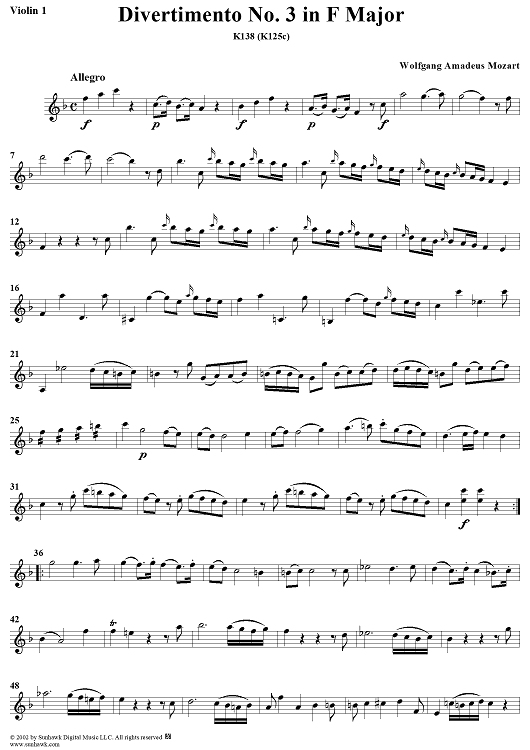 "Divertimento No. 3 in F Major, K138 - Violin 1" Sheet Music by Wolfgang Amadeus Mozart