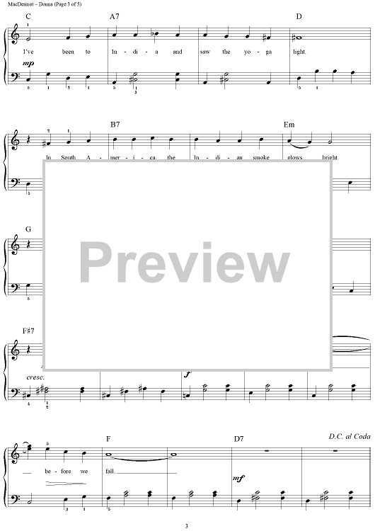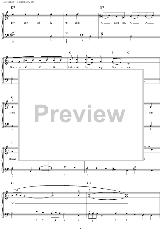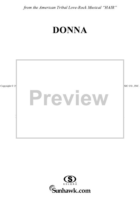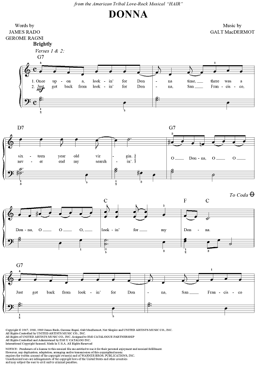 Digital Sheet Music for Donna by Galt MacDermot, James Rado, Gerome Ragni, John Lane scored for Easy Piano/Vocal; id:251417