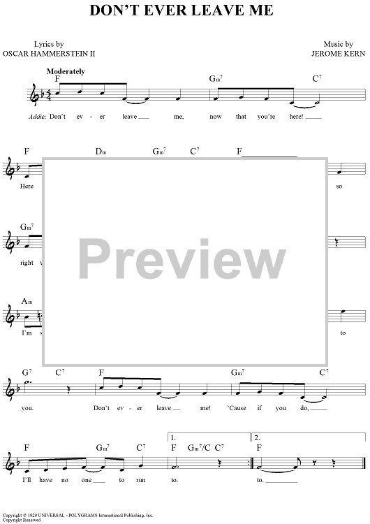 Digital Sheet Music for Don't Ever Leave Me by Jerome Kern, Oscar Hammerstein II scored for Lead Sheet; id:457826