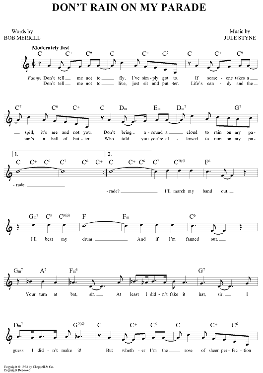 Digital Sheet Music for Don't Rain On My Parade by Jule Styne, Bob Merrill scored for Lead Sheet; id:444350