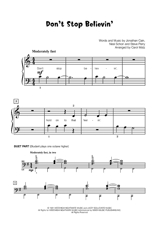 Digital Sheet Music for Don't Stop Believin' by Steve Perry, Neal Schon, Jonathan Cain, Carol Matz scored for Piano; id:451479