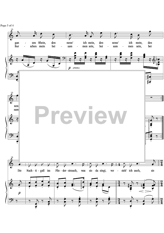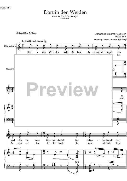 Digital Sheet Music for Dort in den Weiden Op.97 No. 4 by , Johannes Brahms scored for Soprano or Tenor/Piano; id:343252