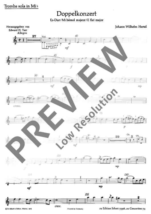 "Double Concerto E flat Major - Trumpet in Bb" Sheet Music by Johann Wilhelm Hertel