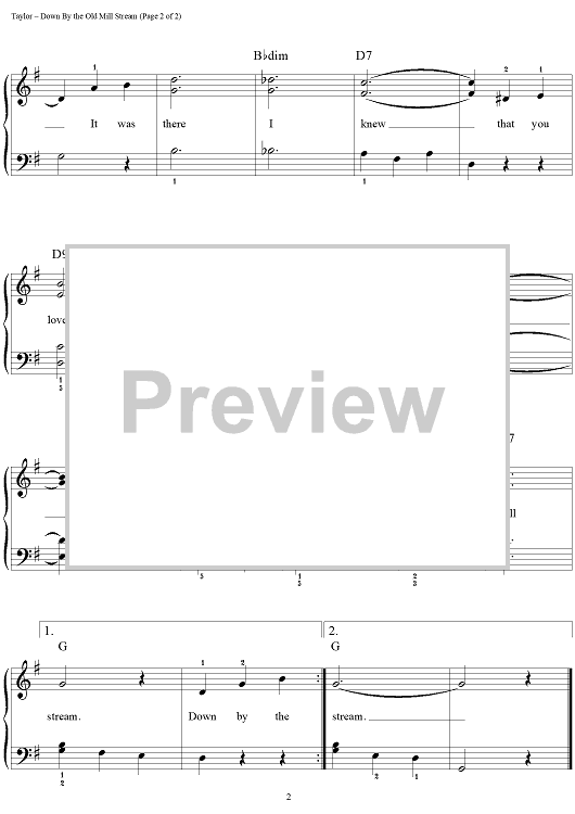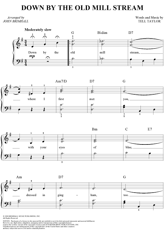 Digital Sheet Music for Down By The Old Mill Stream by John Brimhall, Tell Taylor scored for Easy Piano/Vocal; id:261916