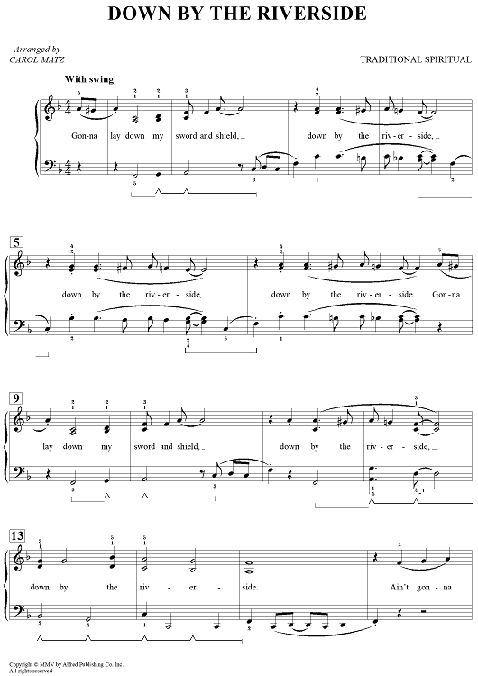 "Down By The Riverside" Sheet Music by Traditional Spiritual