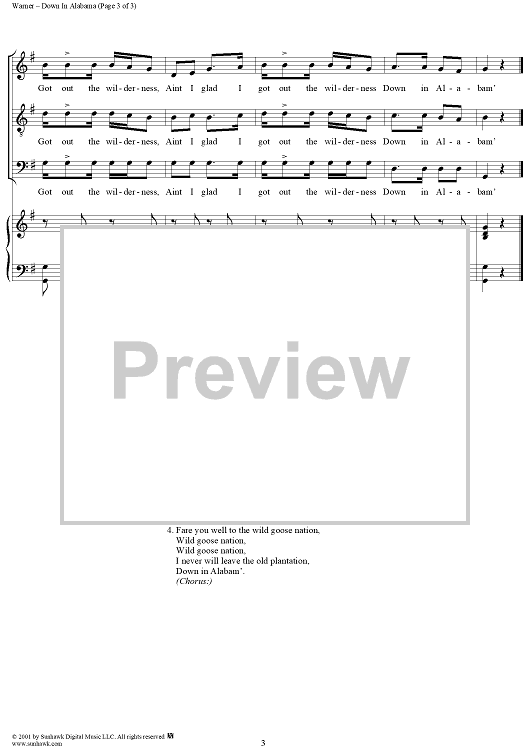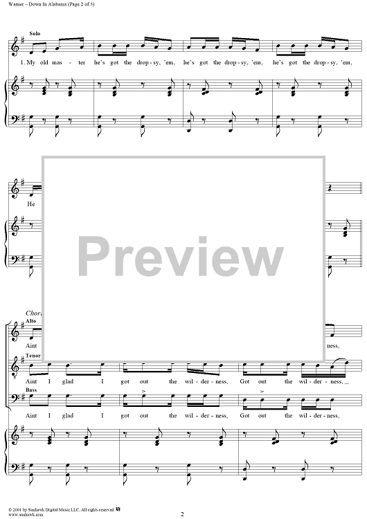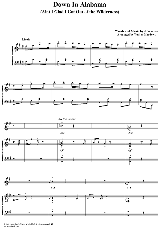 Digital Sheet Music for Down In Alabama (or Aint I Glad I Got Out de Wilderness) by J. Warner scored for Piano/Vocal; id:271110