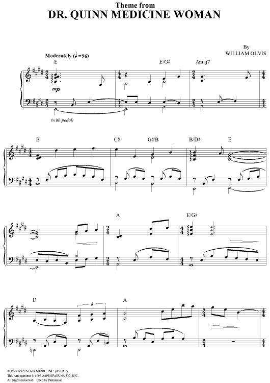 "Dr. Quinn Medicine Woman (Main Theme)" Sheet Music by William Olvis
