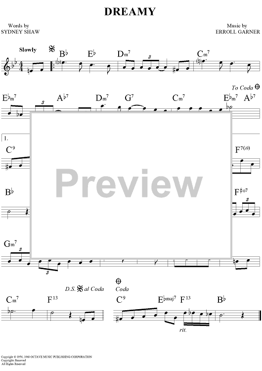 Digital Sheet Music for Dreamy by Erroll Garner, Sydney Shaw scored for Lead Sheet; id:116511