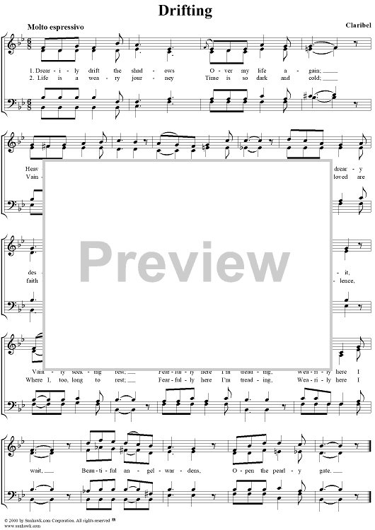 Digital Sheet Music for Drifting by Claribel scored for Piano/Vocal; id:198222