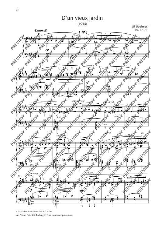 Digital Sheet Music for D’un vieux jardin by Lili Boulanger scored for Piano; id:499214