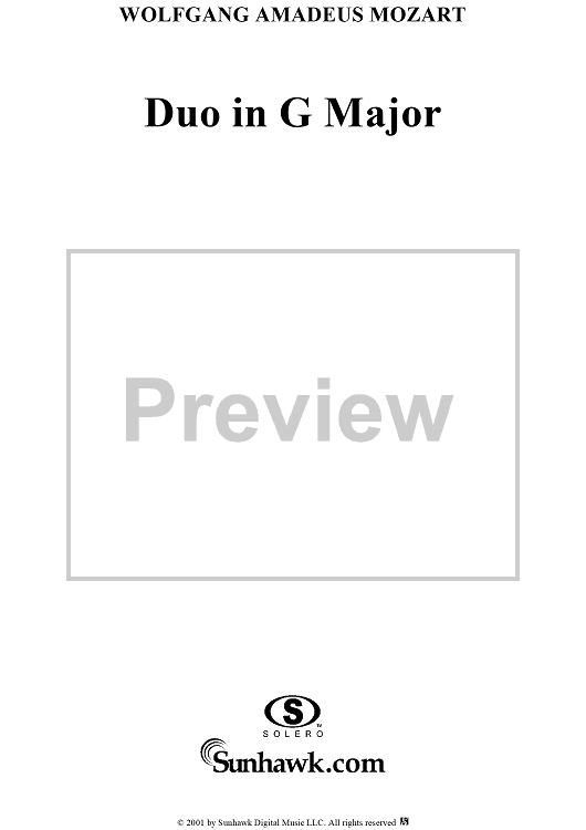 "Duo in G Major - Score" Sheet Music by Wolfgang Amadeus Mozart