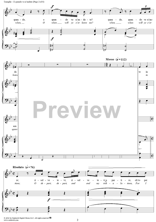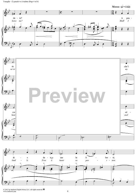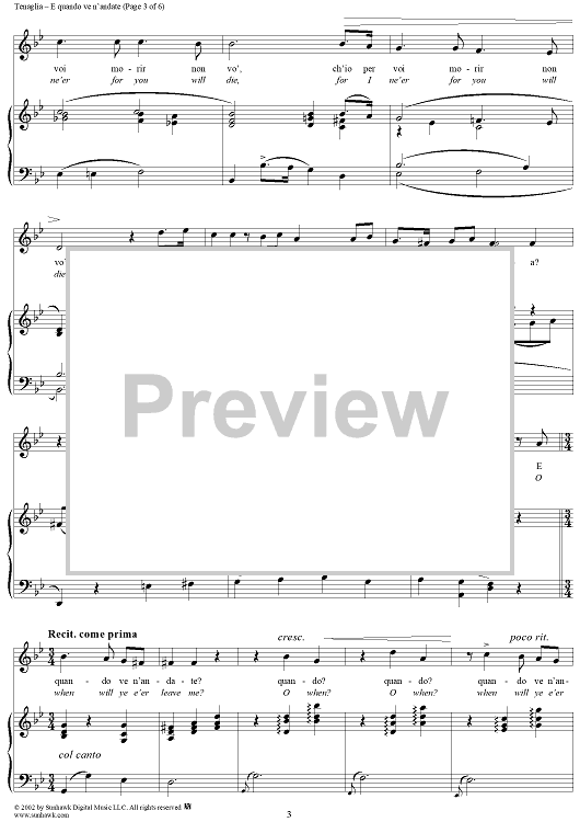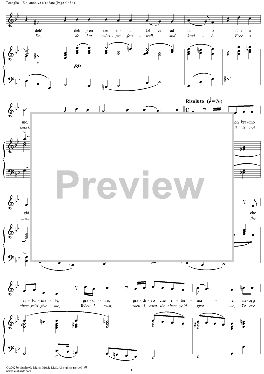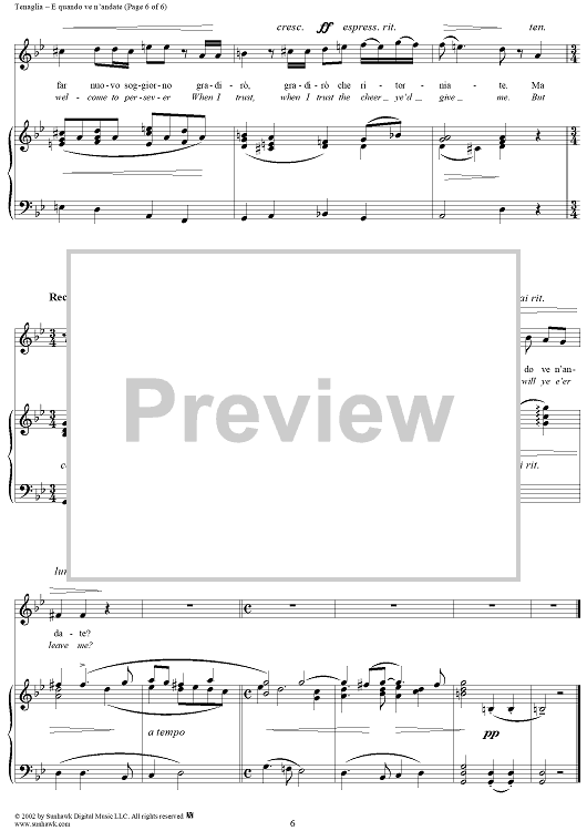 Digital Sheet Music for E quando ve n'andate (O When Will Ye E'er Leave Me) by Anton Francesco Tenaglia scored for Voice/Piano; id:260032