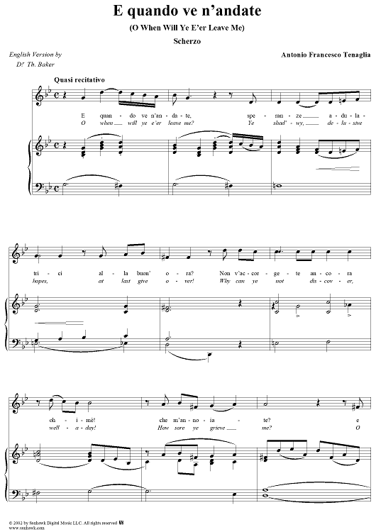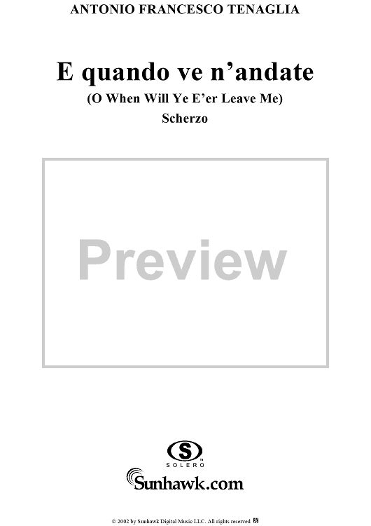 "E quando ve n'andate (O When Will Ye E'er Leave Me)" Sheet Music by Anton Francesco Tenaglia