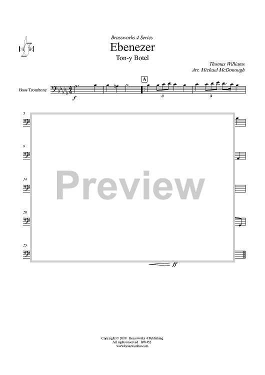 Digital Sheet Music for Ebenezer - Bass Trombone by Michael McDonough, Thomas Williams scored for Trombone Quartet; id:410306