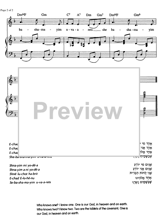 "Echad Mi Yoedéa II" Sheet Music by Traditional