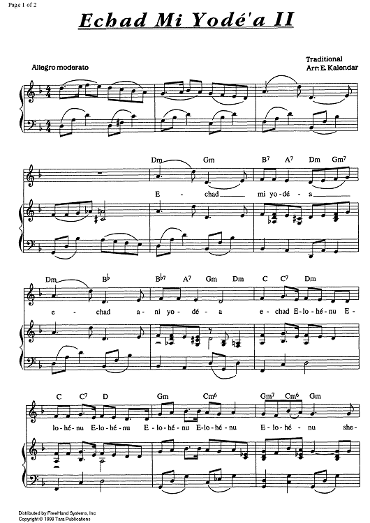 Digital Sheet Music for Echad Mi Yoedéa II by , Edward Kalendar, Traditional scored for Voice/Piano; id:343877