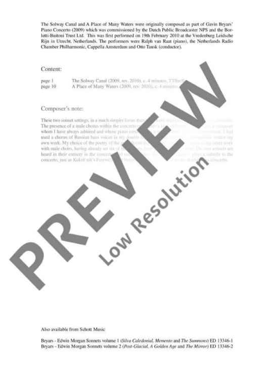 The works in these three volumes for eight-part male choir are settings of sonnets by late Scottish Poet Laureate, Edwin Morgan (1920-2010). An admirer of Morgan's virtuosic poetry, Bryars wrote Silva Caledonia for the Estonian National Men's Choir in 2006, eventually adding seven more settings, including two derived from his Piano Concerto. A great collection for any ambitious male choir.
