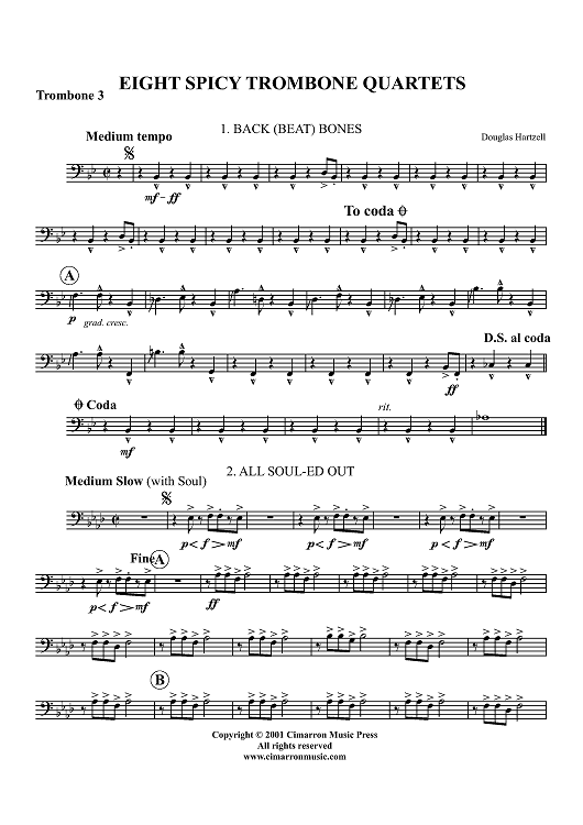 Digital Sheet Music for Eight Spicy Trombone Quartets - Trombone 3 by Douglas Hartzell scored for Trombone Quartet; id:319717