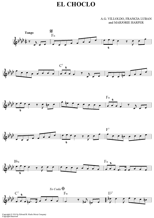 Digital Sheet Music for El Choclo by Francia Luban, Ángel Villoldo, Marjorie Harper scored for Lead Sheet; id:448576