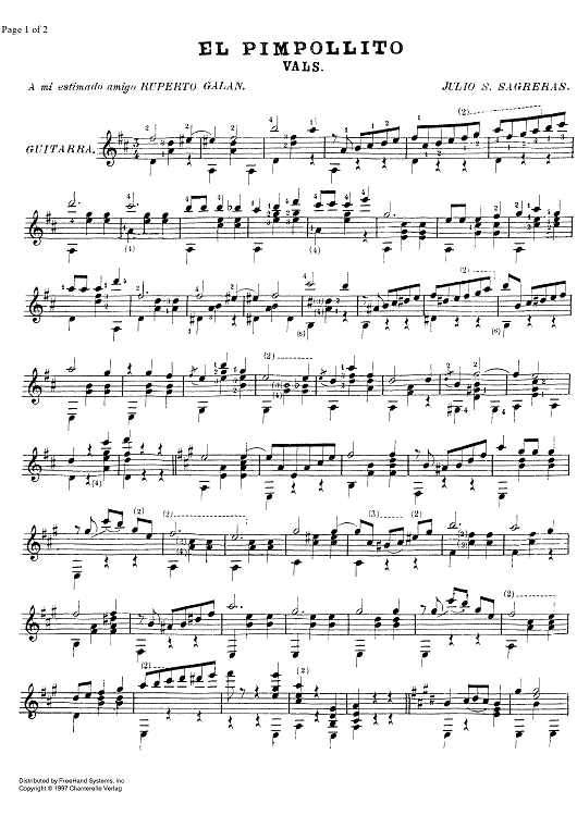 Digital Sheet Music for El Pimpollito by Julio Sagreras scored for Guitar; id:327141