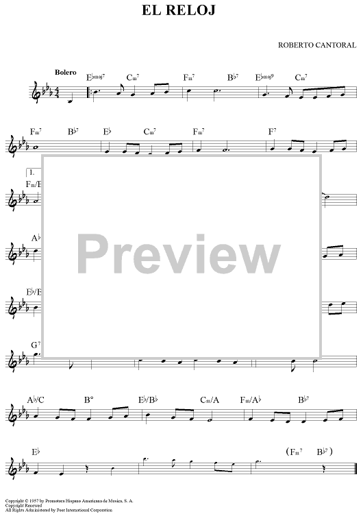 Digital Sheet Music for El Reloj by Roberto Cantoral scored for Lead Sheet; id:448590
