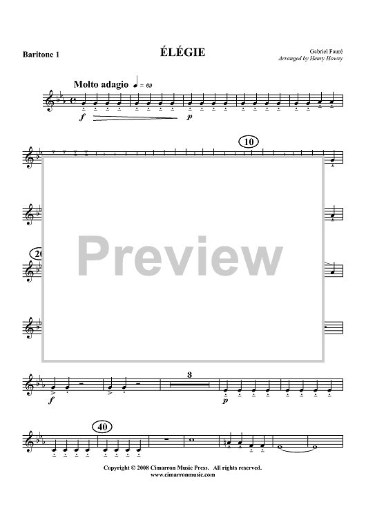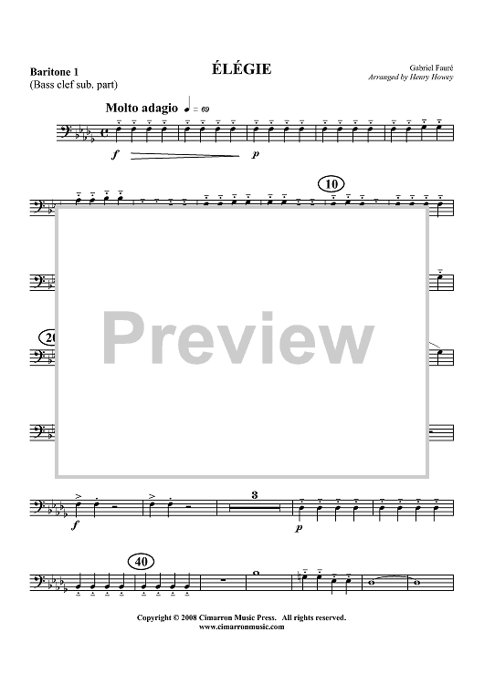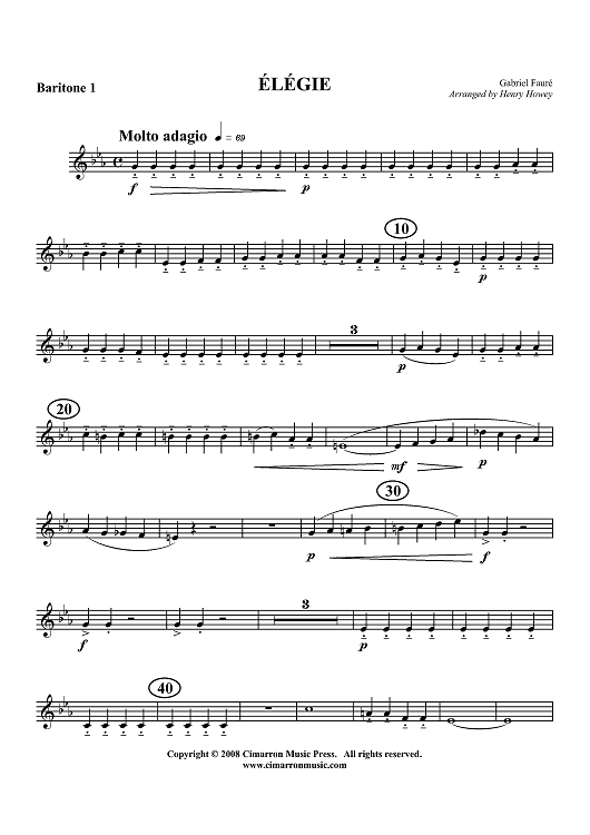 Digital Sheet Music for Elegie - Baritones 1 TC/BC by Gabriel Fauré, Henry Howey scored for Brass Ensemble; id:417182