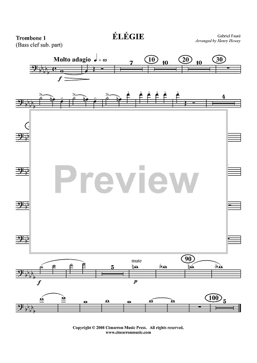 Digital Sheet Music for Elegie - Trombone 1 TC/BC by Gabriel Fauré, Henry Howey scored for Brass Ensemble; id:417184