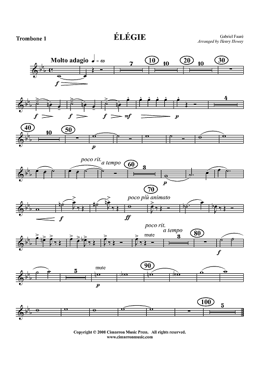 "Elegie - Trombone 1 TC/BC" Sheet Music by Gabriel Fauré