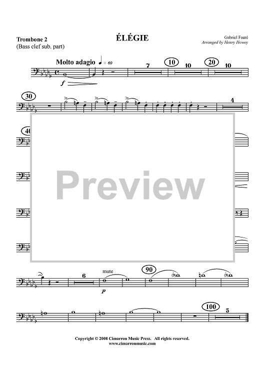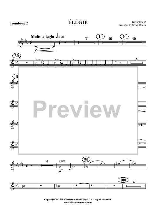 Digital Sheet Music for Elegie - Trombone 2 TC/BC by Gabriel Fauré, Henry Howey scored for Brass Ensemble; id:417185