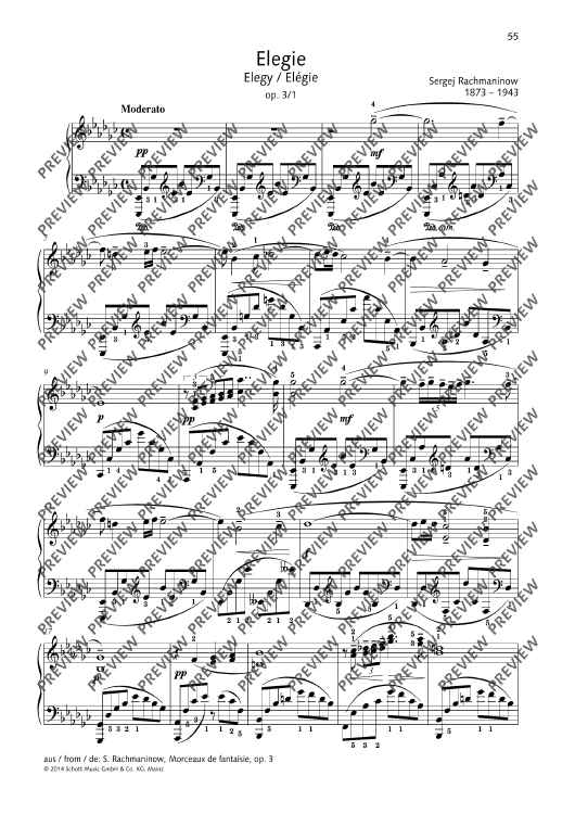 Digital Sheet Music for Elegy by Sergei Wassiljewitsch Rachmaninoff scored for Piano; id:486708