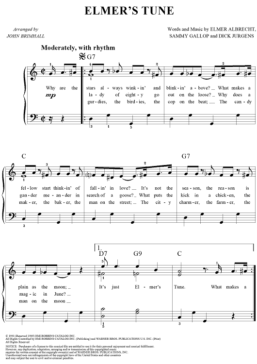 Digital Sheet Music for Elmer's Tune by Sammy Gallop, Elmer Albrecht, Dick Jurgens, John Brimhall scored for Easy Piano/Vocal; id:215515