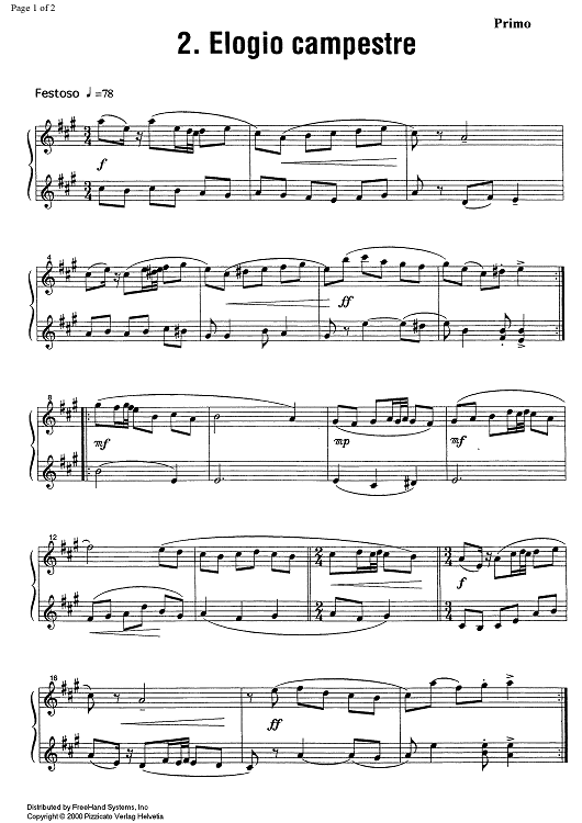 Digital Sheet Music for Elogio campestre by Leonello Capodaglio scored for 1 Piano, 4 Hands; id:334810