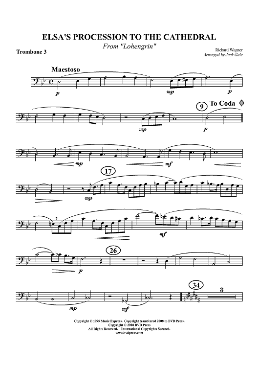 Digital Sheet Music for Elsa's Procession to the Cathedral - from "Lohengrin" - Trombone 3 by Richard Wagner, Jack Gale scored for Trombone Quartet; id:411936