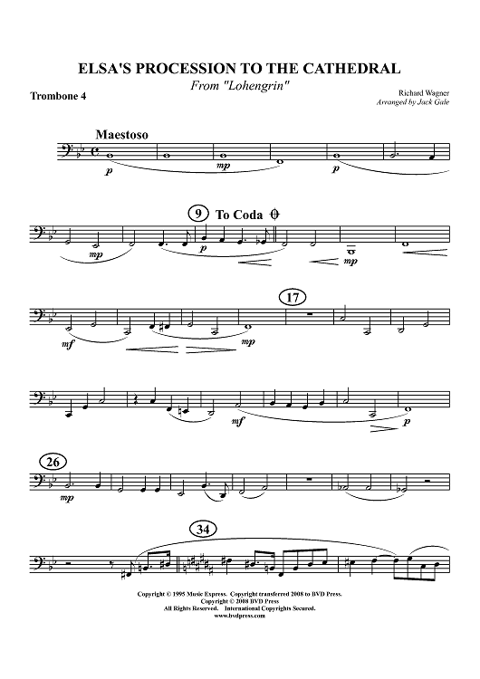 Digital Sheet Music for Elsa's Procession to the Cathedral - from "Lohengrin" - Trombone 4 by Richard Wagner, Jack Gale scored for Trombone Quartet; id:411937