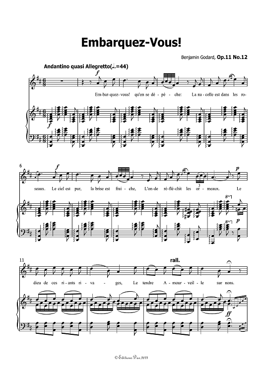 "Embarquez-Vous!" (Come and embark!), Op. 11 No. 12 in D Major,for Voice and Piano